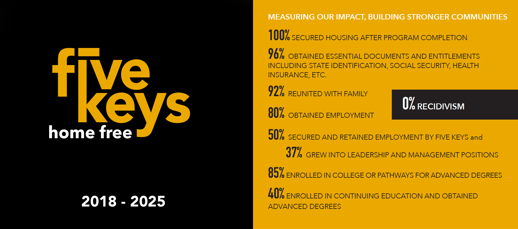 After spending more than half of her life behind bars, Trancita was released on Oct. 22, 2024 from the Central California Women’s Facility (CCWF) in Chowchilla, CA. She says that because of Five Keys’ Home Free, a Treasure Island-based trauma-informed reentry program for recently-released women, she quickly found a job.